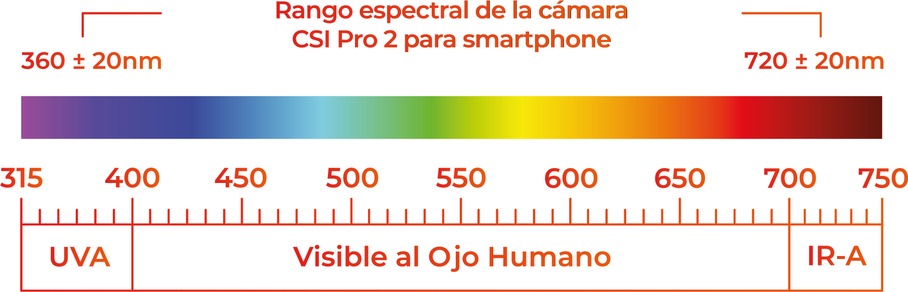 4. Rango espectral de la cámara: de 360nm ± 20nm