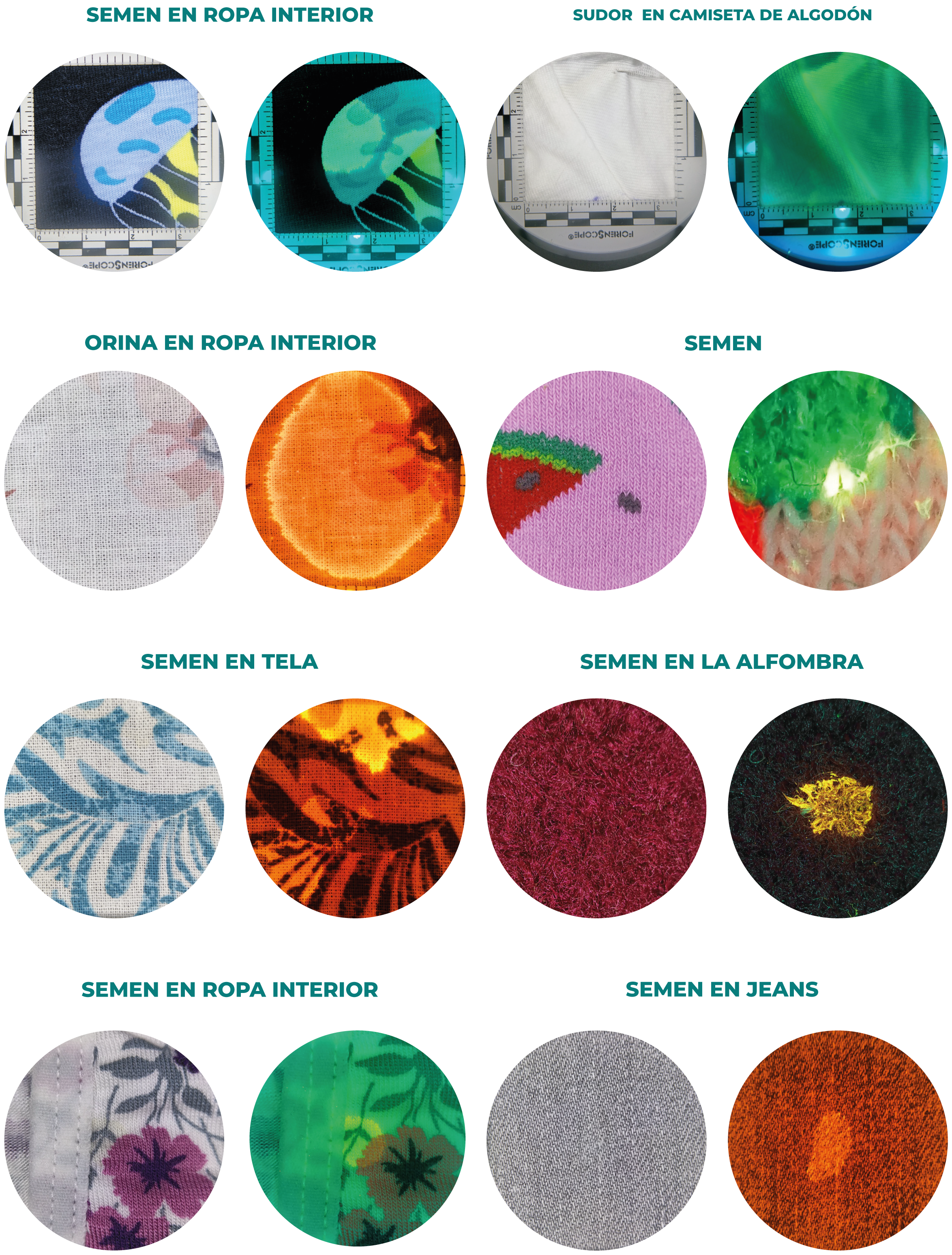 Capaz de detectar fluidos corporales, realizar exámenes corporales (marcas